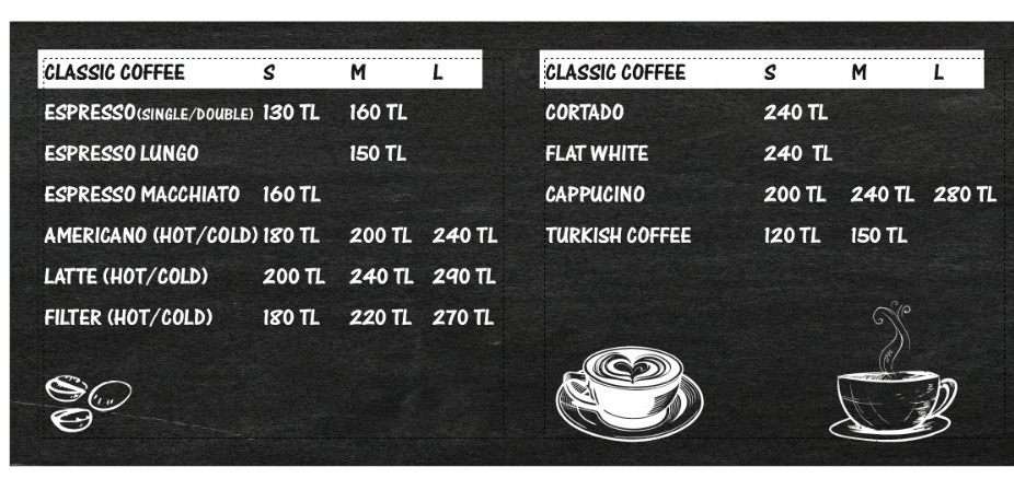 - Classic Coffees: Perfectly brewed favorites to kickstart your day.
